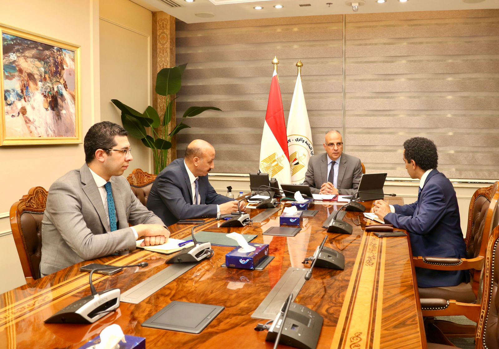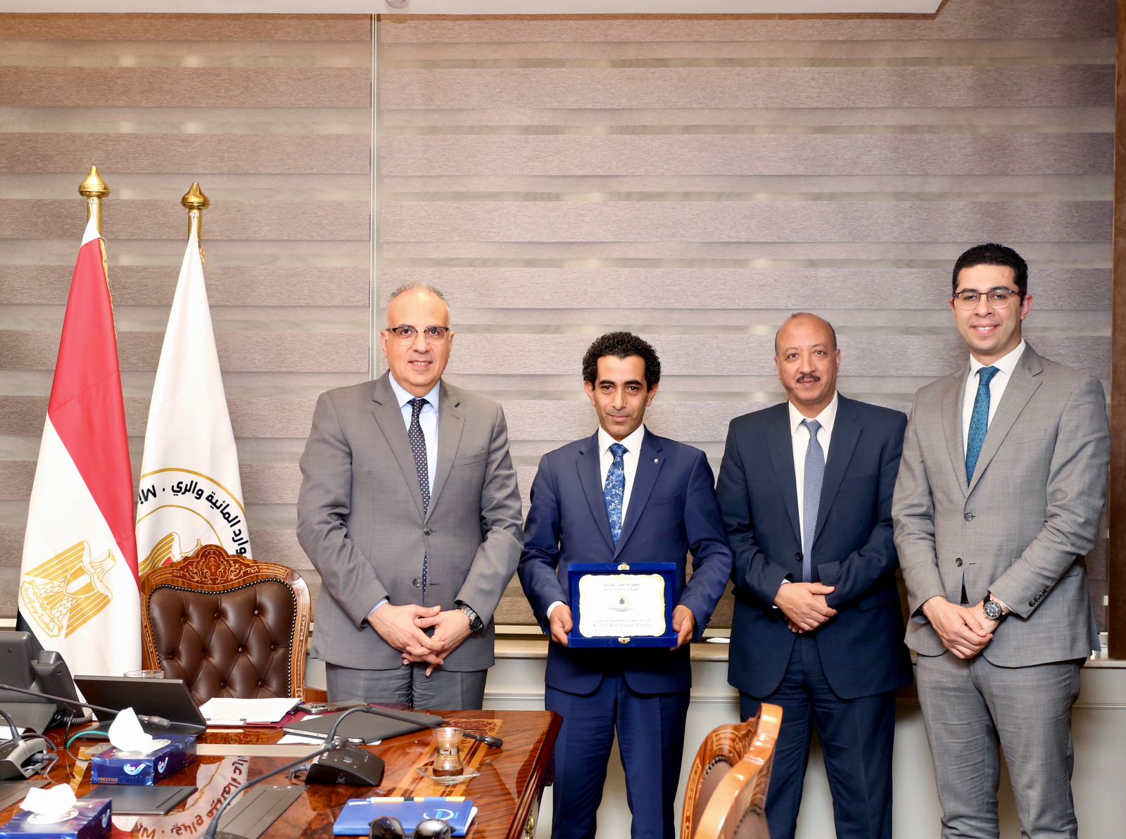 وذلك خلال لقاءه الدكتور مروان الرقاد المدير التنفيذي للشبكة الاسلامية لتنمية وادارة مصادر المياه التابعة لمنظمة التعاون الاسلامي لبحث سُبل تعزيز التعاون بين الوزارة والمنظمة في مجال إدارة المياه، مرحبا بزيارة الدكتور الرقاد ورغبته في تعزيز التعاون بين الوزارة والمنظمة والتطلع للمزيد من التعاون المثمر والفعال فى مجال المياه ، ومن جانبه أعرب الدكتور الرقاد عن سعادته بلقاء السيد الوزير ، مؤكداً على حرص المنظمة على التعاون مع الوزارة في مشروعات تحسين كفاءة إستخدام الموارد المائية .