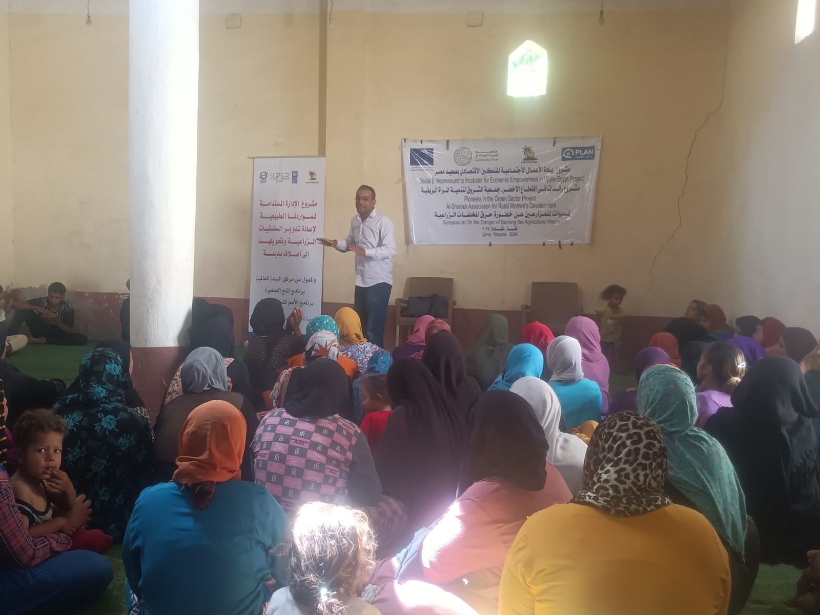 حاضر بالندوات المهندس أسعد محمد رئيس قسم التوعية البيئة جهاز شئون البيئة و المهندس عمر رياض منسق اول مشروع النمو الاخضر الشامل - اليونيدو ، تناولا إضرار حرق المخلفات الزراعية منها سفير قصب السكر و الموز و الذرة و الشمار و تم توضيح الفوائد الغذائية و الاقتصادية من إعادة تدوير المتبقيات الزراعية فى صناعة الأعلاف و السماد البلدى، وانتاج بعض المنتجات الاخرى من إعادة التدوير، وذلك مما يؤدى إلى تحقيق التنمية المستدامة.