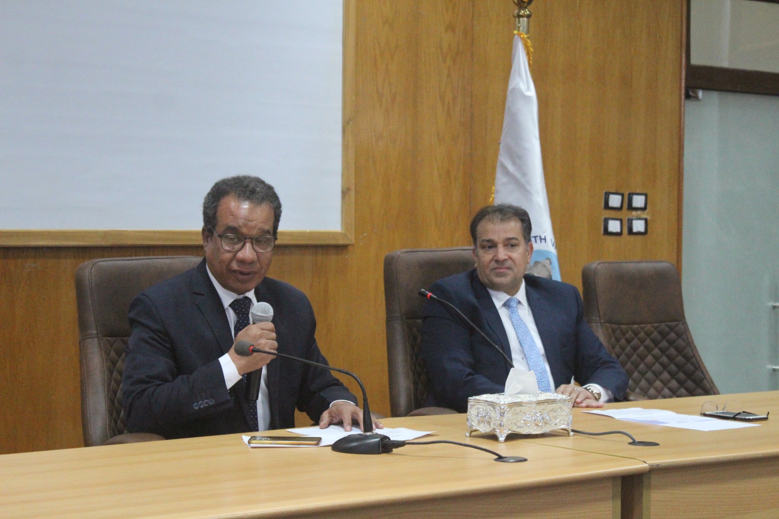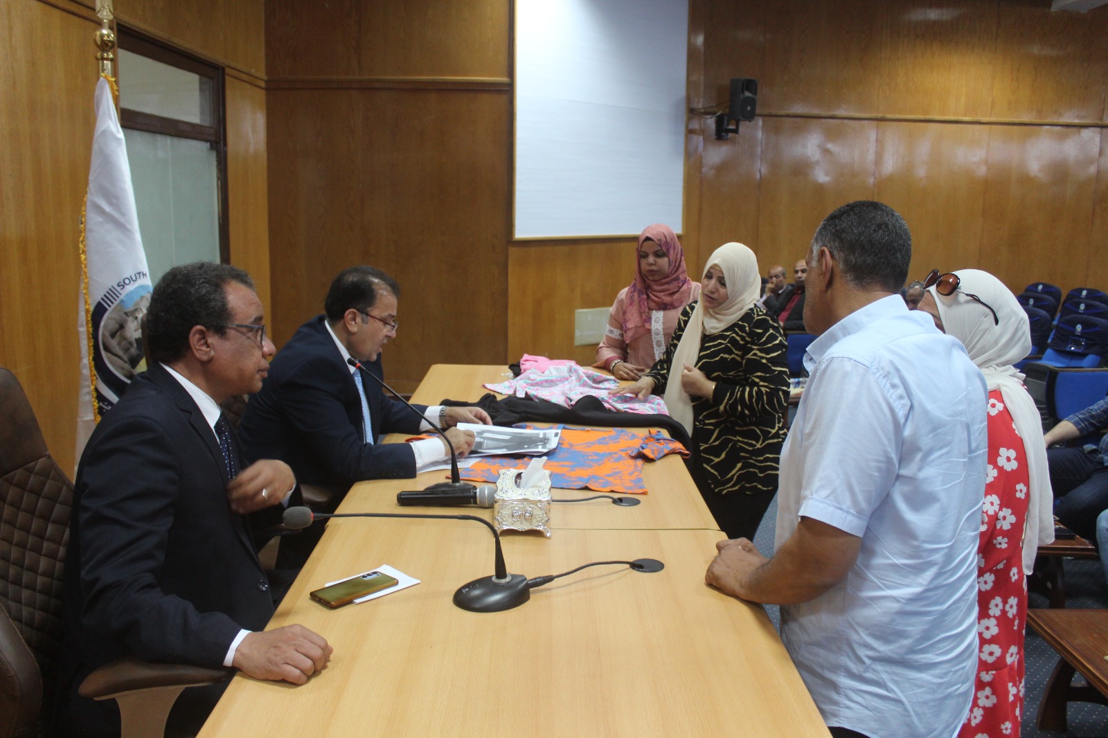 اقيم الاجتماع بحضور الدكتور محمد سعيد عبد الله نائب رئيس الجامعة لشؤون خدمه المجتمع وتنميه البيئة والدكتور عصام الطيب عميد كلية التربية والدكتور محمود عبدالعال مدير مستشفى الطوارئ الجامعى والدكتور عبدالرحمن رضوان وكيل كلية التربية لشئون التعليم والطلاب والدكتورة بدرية حسن وكيل كلية التربية النوعية وطروب طلبه امين الجامعة المساعد وعبد الرازق حسين امين الجامعة المساعد واعضاء اللجنة المشكله من لفيف من القيادات الادارية بالجامعة ومندوب مديرية المالية بالجامعة .