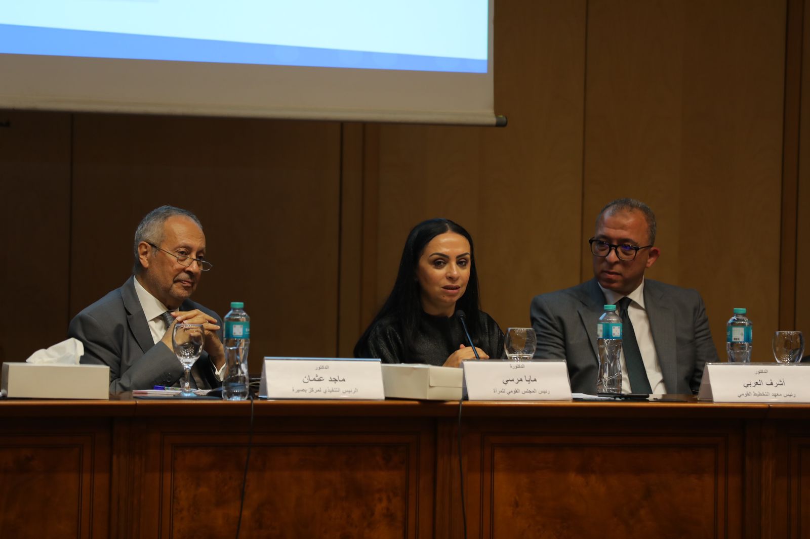 شارك في الجلسة كل من الدكتور ماجد عثمان، الرئيس التنفيذي لمركز بصيرة، الدكتور أشرف العربي، رئيس معهد التخطيط القومي، الدكتور سعيد المصري، أستاذ علم الاجتماع بكلية الآداب، الدكتورة منال الجميل، المديرة التنفيذية لجمعية آل قرة، وعضو مجلس النواب سابقًا، والدكتورة نهاد أبو القمصان، رئيس المركز المصري لحقوق المرأة.