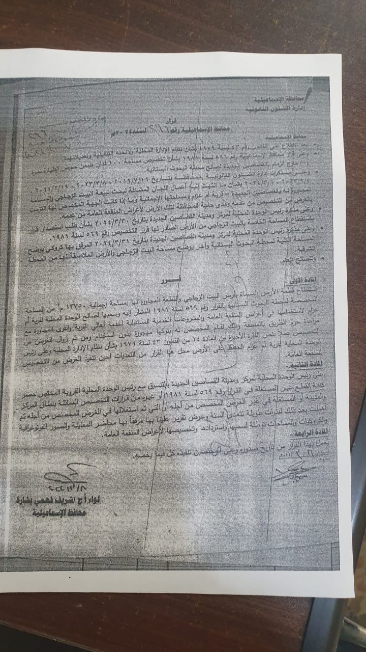 وسط فرحة عارمة محافظ الإسماعيلية يخصص قطعة أرض لإنشاء مجمع خدمات بالقصاصين