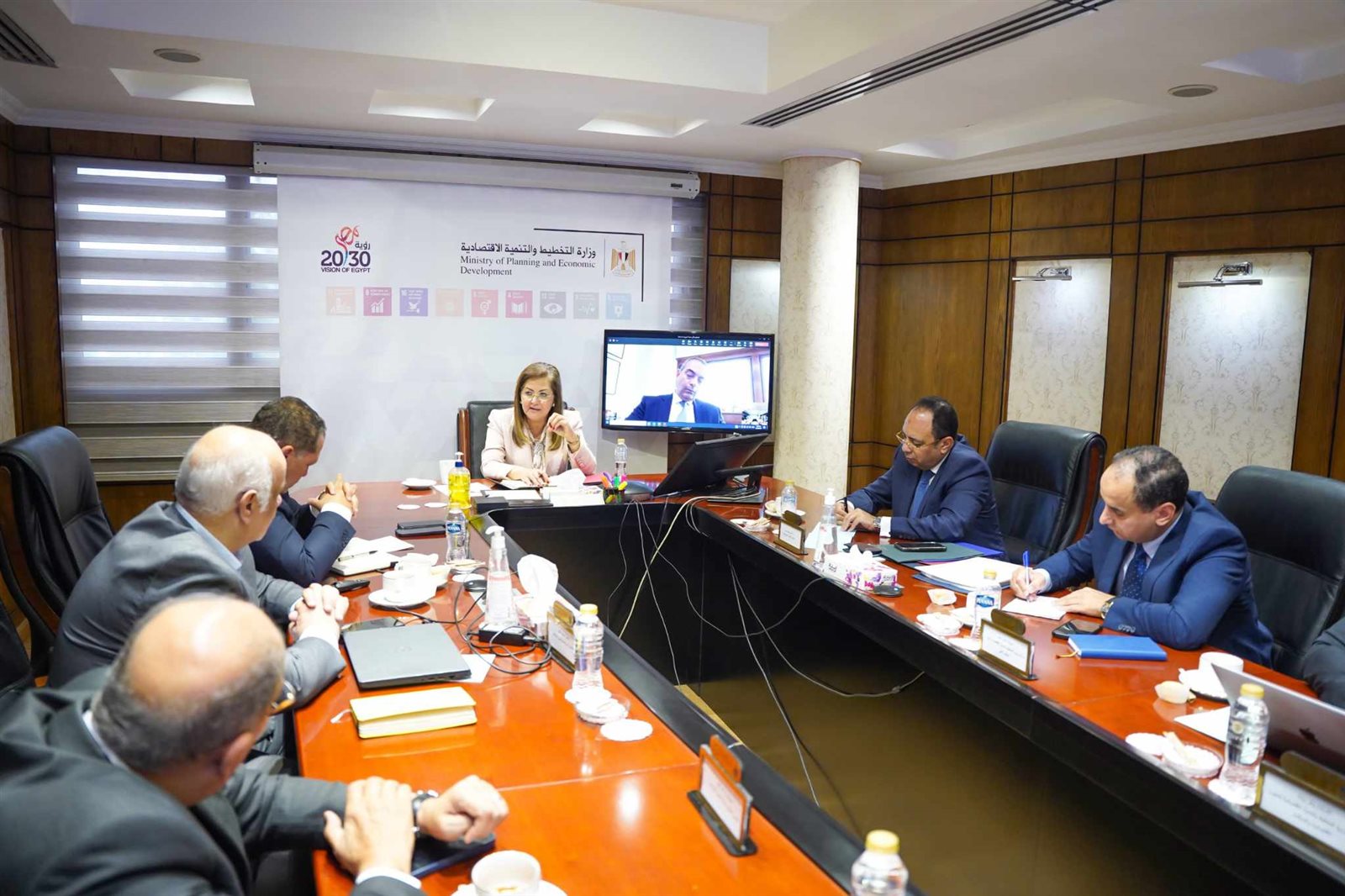 عقدت د. هالة السعيد وزيرة التخطيط والتنمية الاقتصادية اجتماعًا مع م. شريف حمودة رئيس مجلس إدارة مدينة طربول الصناعية بحضور أيمن سليمان المدير التنفيذي لصندوق مصر السيادي والمستشار محمد أبازيد المستشار القانوني لوزيرة التخطيط وكمال نصر مساعد الوزيرة لشؤون المكتب الفني ووائل زيادة مساعد الوزيرة للشؤون الاقتصادية والاستثمار.