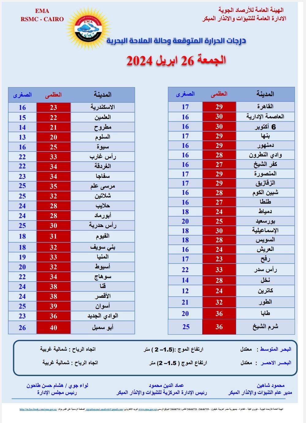 درجات الحرارة الصغرى والعظمى المتوقعة اليوم الجمعة: