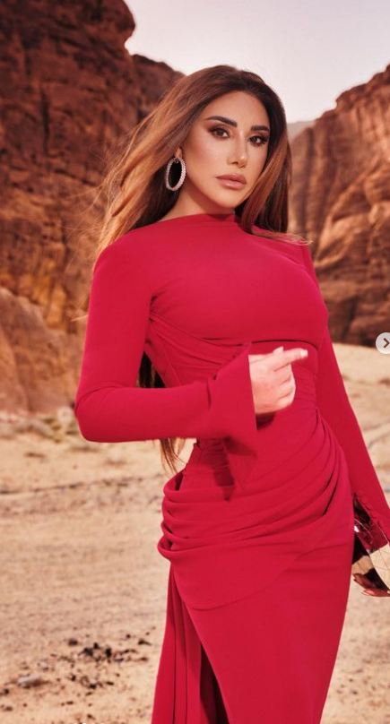 واختارت تسريحة شعر جذابة متناغمة مع إطلالتها الناعمة ووضعت مكياجًا ناعمًا مرتكزًا على الألوان الترابية مع تحديد عينيها بالكحل والماسكرا السوداء ولون البينك في الشفاه.