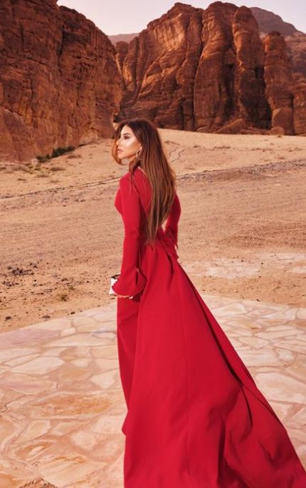 وتألقت نجوى كرم بإطلالة ساحرة جذابة، حيث ارتدت فستان طويل مجسم، بأكمام طويلة، مزود بذيل من الوراء بشكل ناعم، صمم الفستان من قماش الكريب باللون الأحمر، فيما انتعلت حذاء بكعب عال.