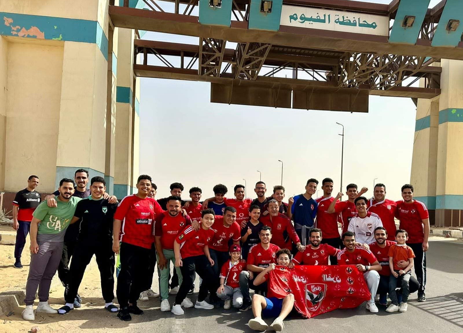 وشهد ترحال جماهير النادي الأهلي بمحافظة الفيوم توافد تجمعات الجماهير من كافة قرى ومراكز المحافظة عند نقطة التجميع أمام البوابة الرئيسية على طريق القاهرة الفيوم الصحراوي، وهي البوابة التي تشهد ترحال جماهير الأندية والمنتخب ويتم التقاط الصور التذكارية أمامها.
