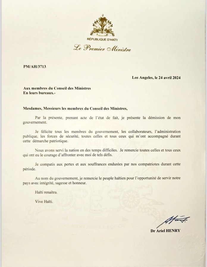 أدى المجلس الانتقالي في هايتي اليمين الدستورية، أمس الخميس، بعد استقالة رئيس الوزراء أرييل هنري رسميا في وقت سابق من اليوم.