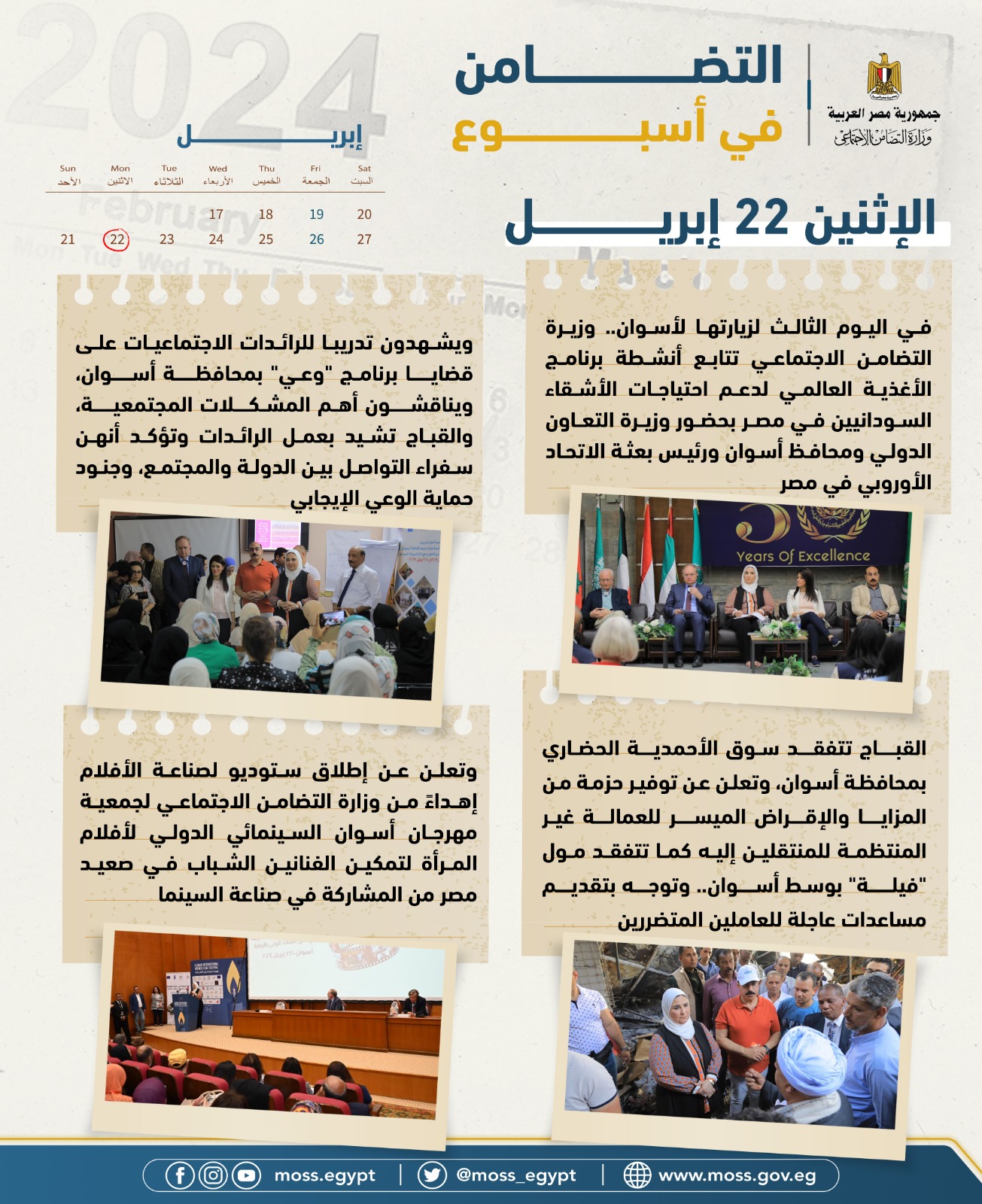 الحصاد الأسبوعي لأنشطة التضامن الاجتماعي من 19 إلى 25 إبريل 2024