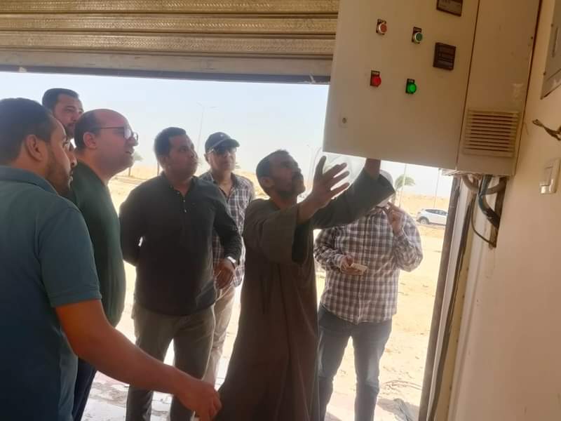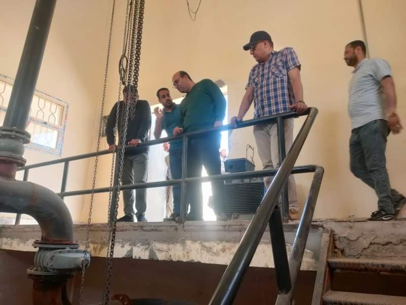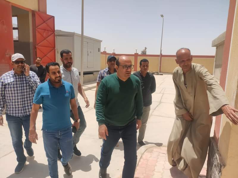 وتفقد المهندس محمد عبد الله محطة رفع مياه الآبار بطاقة ٦٠٠٠م ٣ يومي وعدد ٣ آبار مياه جوفية وذلك للإطمئنان على عمل المحطة و الطلمبات بكفاءة عالية وطالب شركة الصيانه بمتابعة اعمال الصيانة بصفة مستمرة للحفاظ على عمل الطلمبات والآبار بكفاءة عالية وصرح بأن المحطة تتكون من عنبر طلمبات لرفع المياه الجوفية إلى شبكة ري منطقة التوسعات طاقة الطلمبة الواحده ٢٠٠ م٣ ساعه وخزان بسعه ٤٥٠م٣ موضحا بأن المحطه تقوم برفع المياه لمنطقة التوسعات الجنوبية لاستخدامها فى اعمال الزراعة .