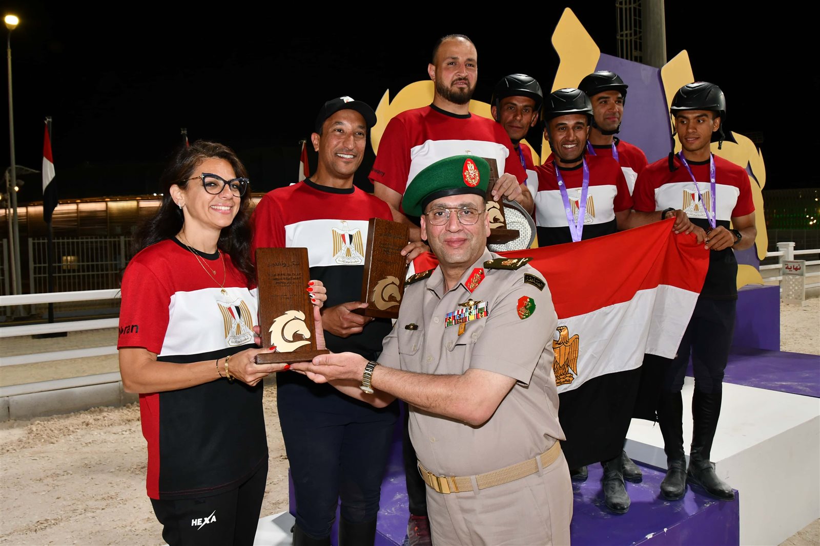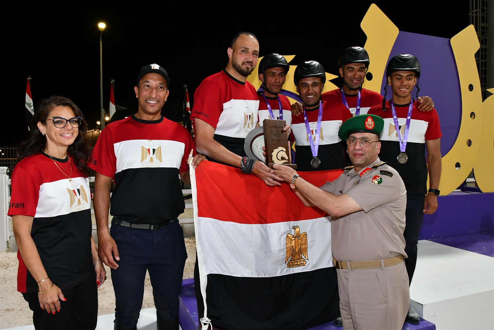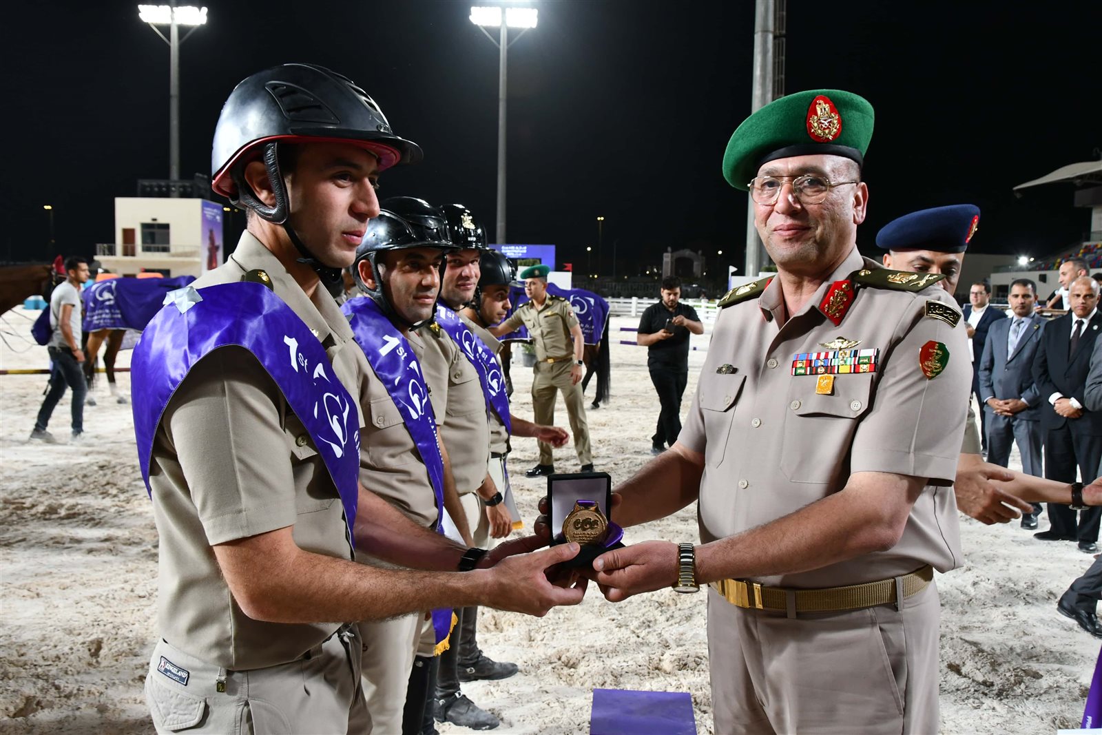 حضر ختام فعاليات البطولة وتكريم اللاعبين اللواء أح سعد الدين مصطفى مساعد وزير الدفاع ومدير المدرعات ورئيس الإتحاد العربى للرياضة العسكرية ورئيس جهاز الرياضة للقوات المسلحة ورئيس الإتحاد الدولى لإلتقات الاوتاد ورئيس الاتحاد المصرى للفروسية .