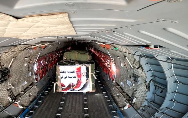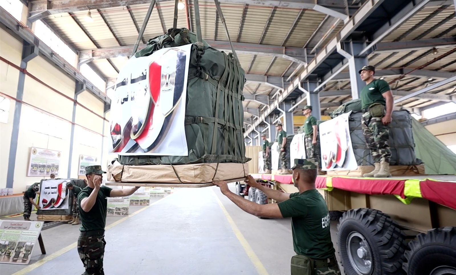 تواصل القوات المسلحة المصرية الإعداد والتجهيز اليومي لشحنات المساعدات الإنسانية والتى تضم أطنان من المستلزمات الطبية والغذائية وإعدادها للإسقاط الجوى بالمناطق المخططة شمال القطاع يأتي ذلك بتوجيهات من السيد الرئيس عبد الفتاح السيسى رئيس الجمهورية القائد الأعلى للقوات المسلحة.