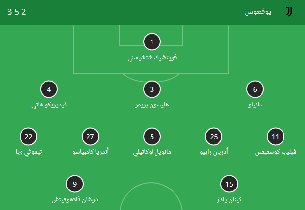 فلاهوفيتش يقود تشكيل يوفنتوس أمام ميلان بالدوري الإيطالي