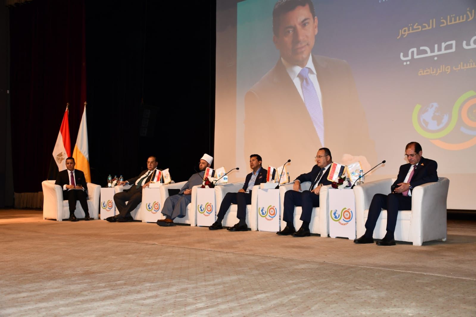 وشارك وزير الشباب والرياضة فى الندوة الحوارية الأولي والتي اقيمت تحت عنوان "دور الشباب في بناء وتنمية الوطن".