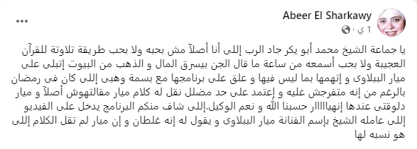 تصريحات الشيخ أبو بكر ضد ميار الببلاوي