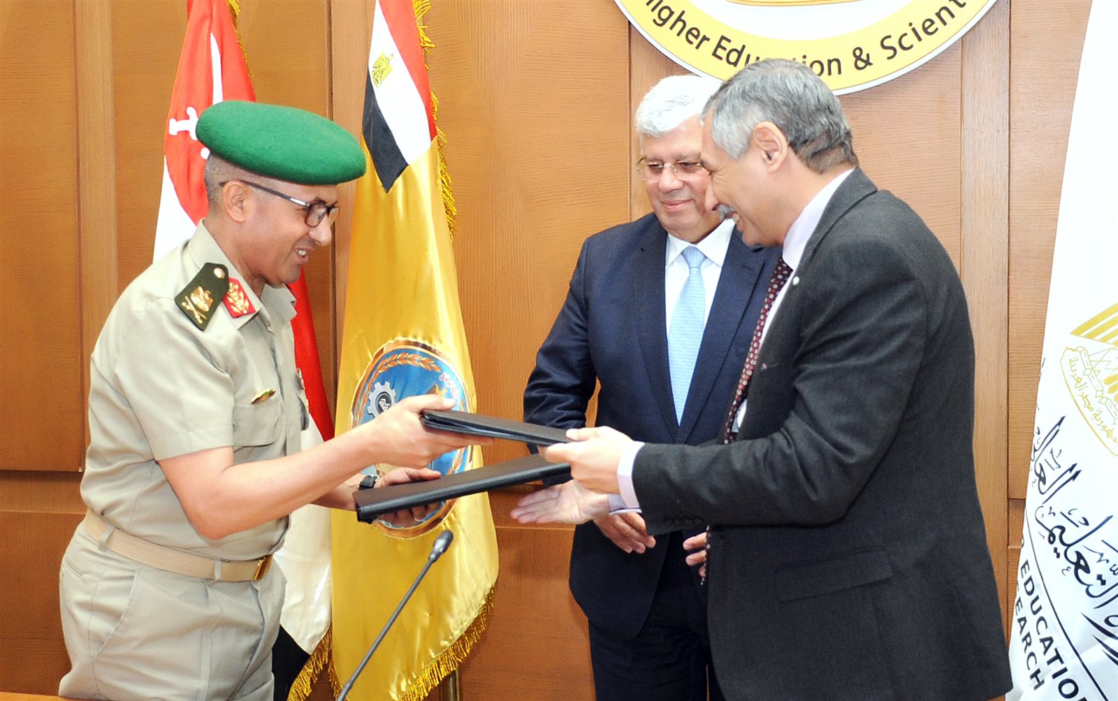 تحرص القوات المسلحة على نقل وتبادل الخبرات العلمية والعملية ودعم الأنشطة البحثية مع مختلف المؤسسات التعليمية بالدولة، حيث وقع اللواء دكتور محمد على متولى مدير إدارة البحوث الفنية والتطوير للقوات المسلحة بروتوكول تعاون مع الدكتور وليد خالد الزواوى أمين مجلس المراكز والمعاهد والهيئات البحثية التابع لوزارة التعليم العالى والبحث العلمى، وذلك بحضور الدكتور أيمن عاشور وزير التعليم العالى والبحث العلمى وعدد من قادة القوات المسلحة وممثلى الوزارة.