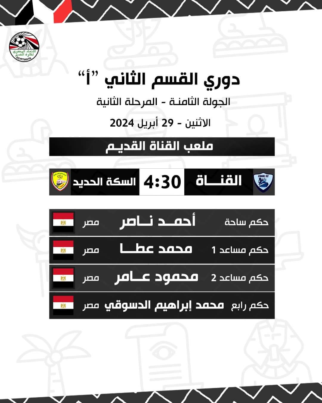 تنطلق المباراة في تمام الثالثة والنصف مساء على ملعب نادي القناة القديم بقيادة أحمد ناصر حكما ساحة، ويعاونه محمد عطا مساعد أول، ومحمود عامر مساعد ثان، ويتواجد محمد إبراهيم الدسوقي حكما رابعا.