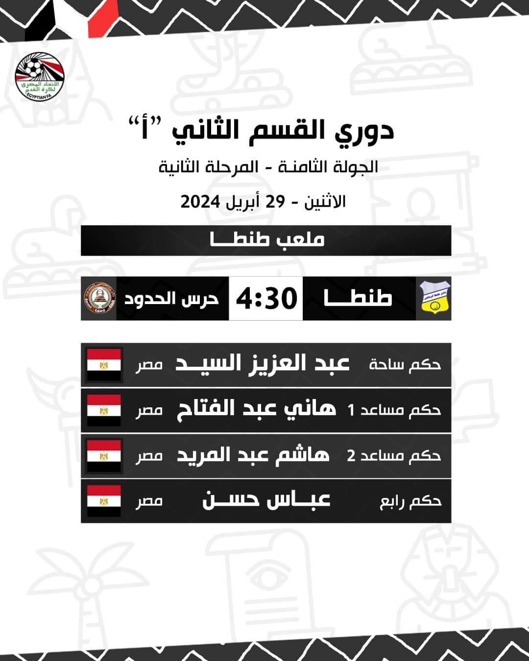 تنطلق المباراة في تمام الثالثة والنصف مساء على ملعب نادي طنطا الرياضي بقيادة عبدالعزيز السيد حكما ساحة، ويعاونه هاني عبدالفتاح مساعد أول، وهاشم عبدالمريد مساعد ثان، ويتواجد عباس حسن حكما رابعا.