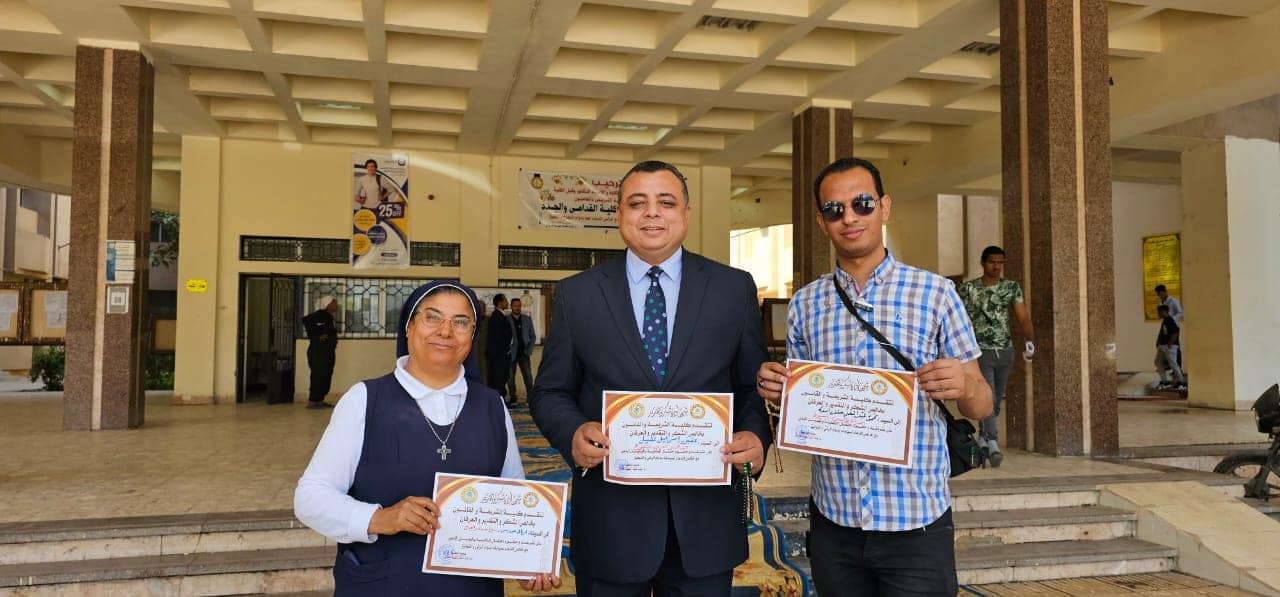 وتسلم الوفد ؛ شهادات تقديرية لمشاركتهم في الاحتفالية وجهودهم ومشاركتهم المجتمعية.