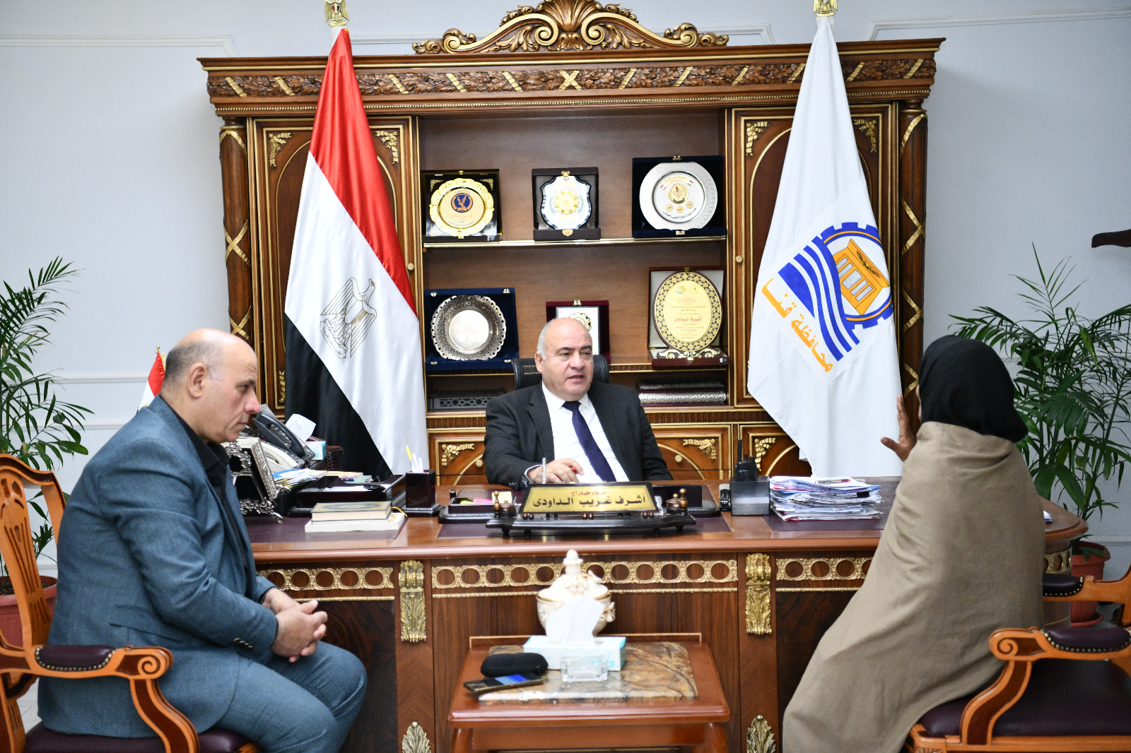 من جانب آخر واصل اللواء أشرف الداودي محافظ قنا، وحسام حموده سكرتير عام المحافظة، ومحمد صلاح أبو كريشه السكرتير العام المساعد للمحافظة، اليوم الثلاثاء، استقبال المواطنين لبحث شكواهم، والعمل على إيجاد الحلول المناسبة بالتنسيق مع الجهات المعنية بتلك الشكاوى، يأتي ذلك في إطار حرص محافظ قنا على التواصل المباشر مع المواطنين وتلبية احتياجاتهم وتخفيف المعاناة عنهم ، سعيا للارتقاء بمستوى الخدمات المقدمة لهم و توطيد جسور الثقة بين المواطنين والحكومة، بحضور حسن عثمان وكيل وزارة التضامن الاجتماعي بقنا و سمية حسن مدير إدارة تشغيل الشباب بالمحافظة.