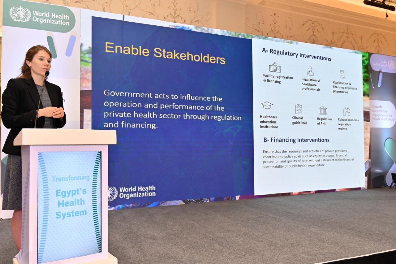 من جانبه، قال الدكتور نعمة عابد، ممثل منظمة الصحة العالمية في مصر، أن المنظمة وضعت عام 2020 استراتيجيتها بشأن إشراك قطاع تقديم الخدمات الصحية الخاص من خلال الحوكمة في النظام الصحي والتي ترتبط ارتباطا وثيقا بالوضع في مصر، مؤكدا أن المنظمة ستواصل جهودها على المستويات الثلاثة (المستوى القطري والإقليمي والمقر الرئيسي) لتقديم الدعم الفني اللازم بالتنسيق مع الشركاء الآخرين لدعم القطاع الصحي في مصر لتقديم خدمات صحية شاملة ومنصفة وعالية الجودة.