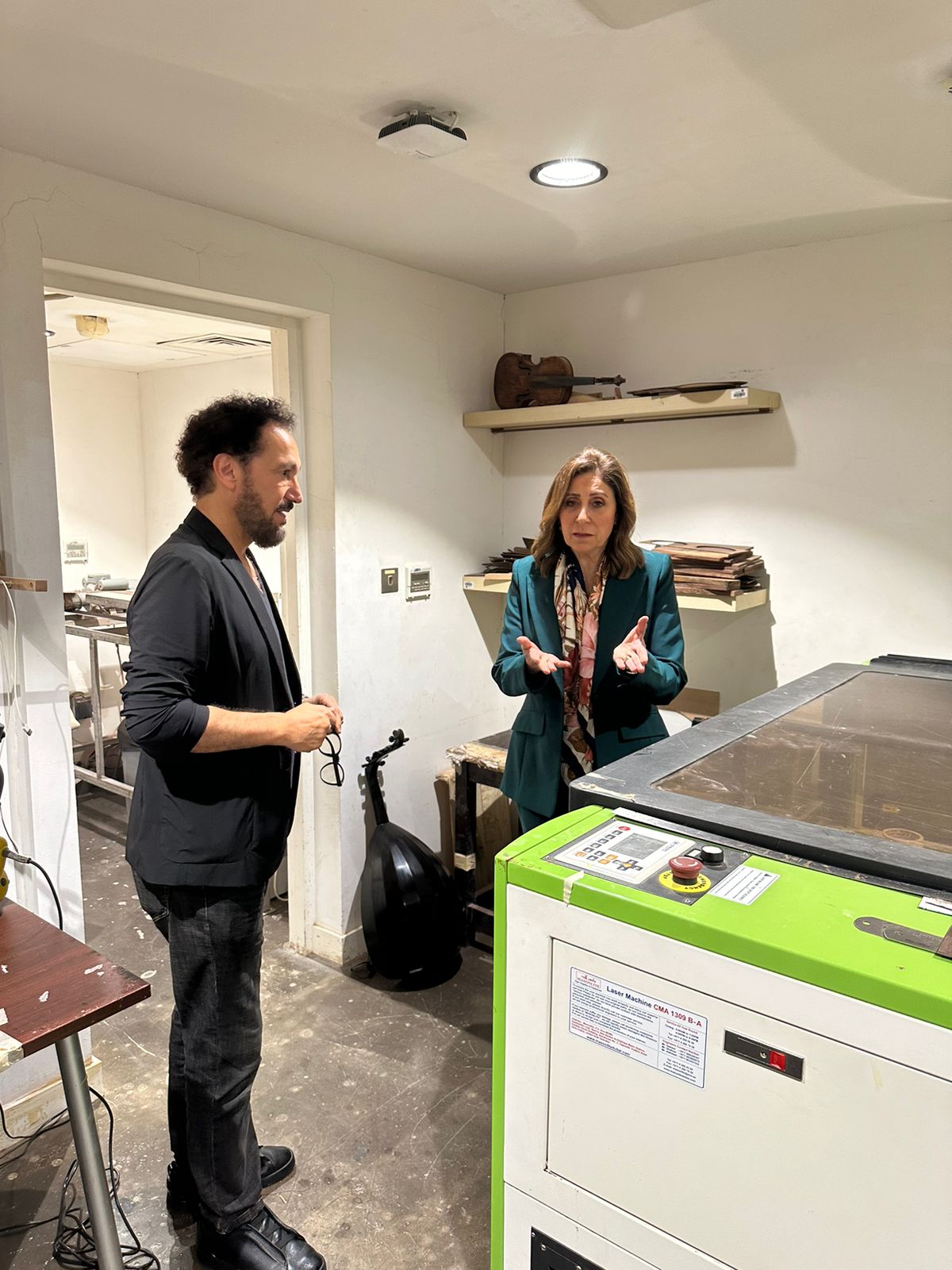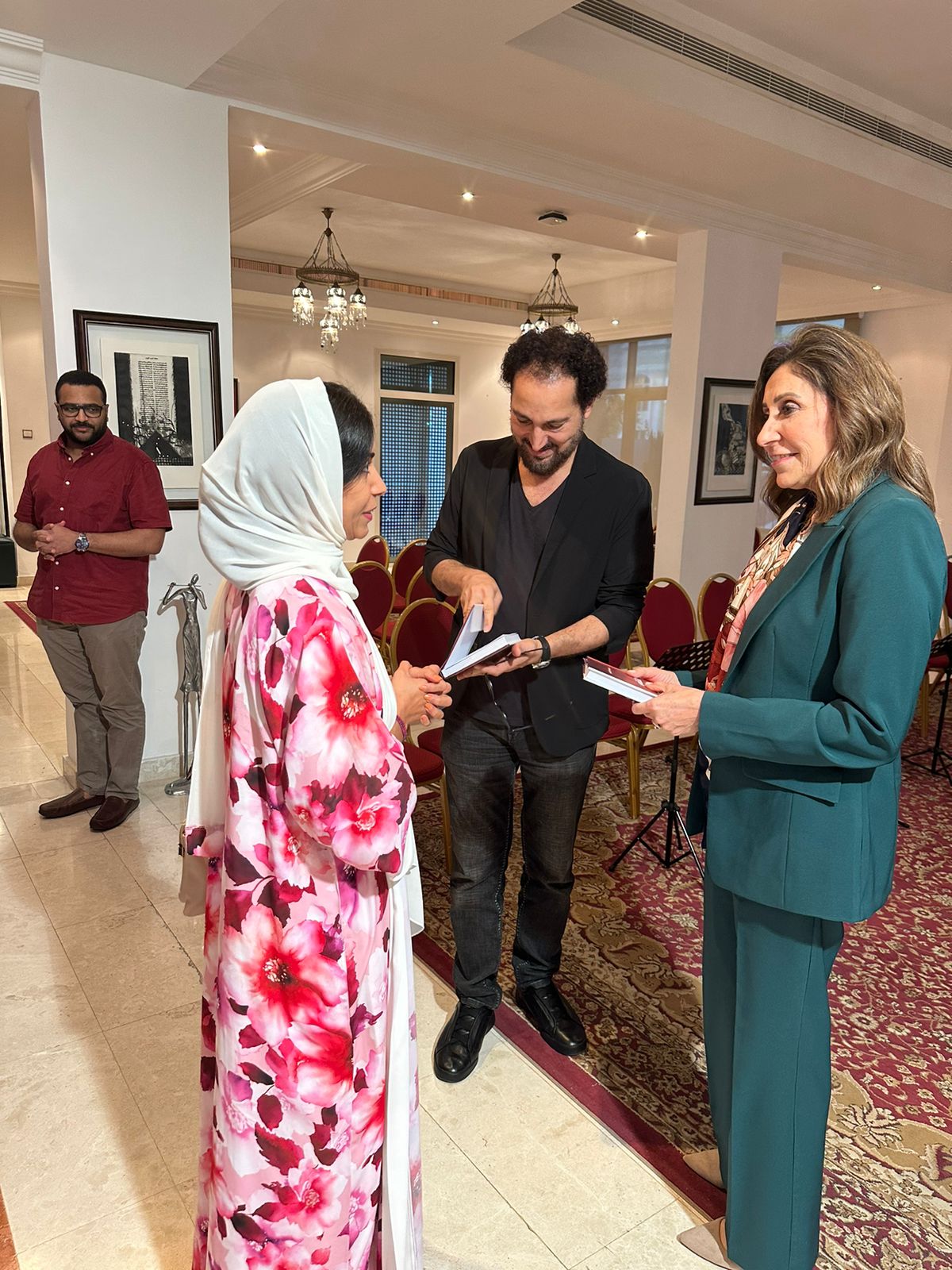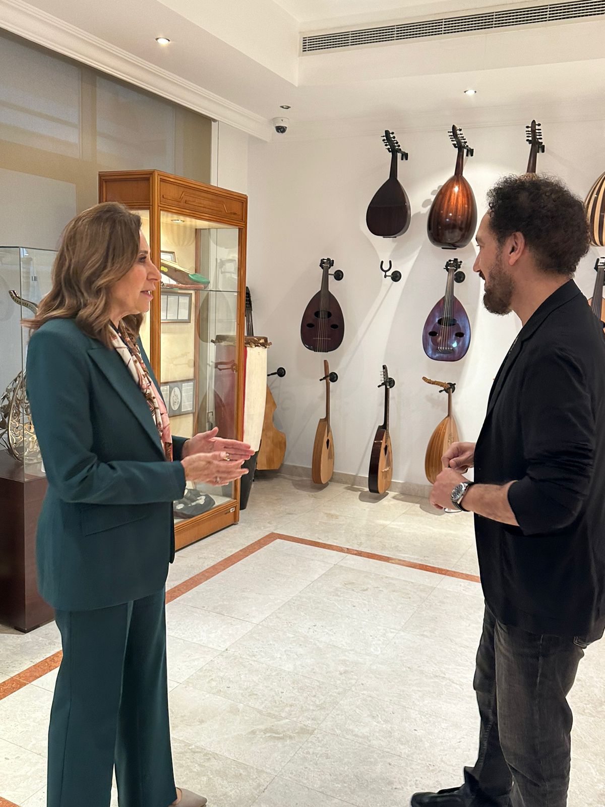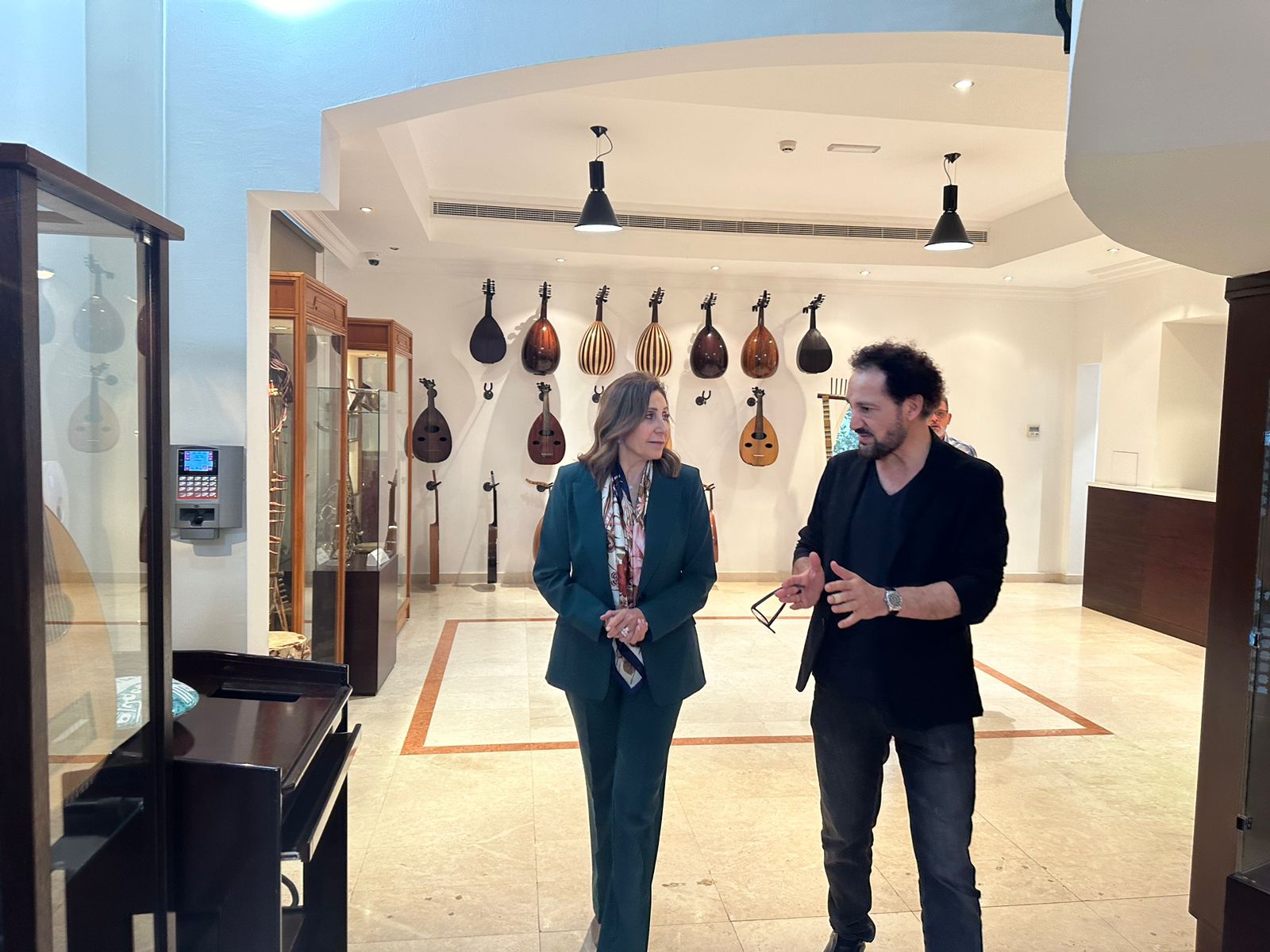 وخلال الزيارة، التقت الدكتورة نيفين الكيلاني، بالفنان الكبير نصير شمة، مؤسس بيت العود العربي، حيث ناقش الجانبان تكثيف التعاون بين بيوت العود التي أسسها الفنان نصير شمة، بعدد من الدول العربية، والتي كانت انطلاقتها ببيت العود العربي في القاهرة.