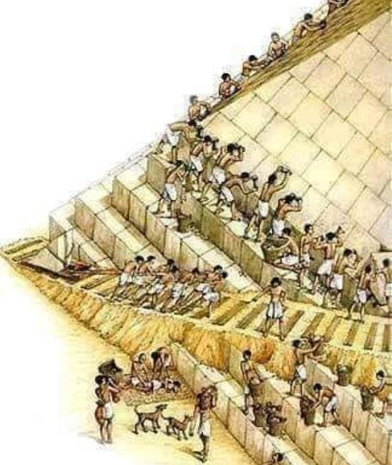 وأن بناء الهرم كان مشروعًا قوميًا، وأنه وغيره من بيوت العبادة في مصر القديمة نفذت طبقا للقواعد التي أرساها إيمحوتب، معبود الطب والهندسة وأول من استعمل الحجر في البناء ووضع نظرياته الإنشائية، وكان العمال يتسابقون طواعية في العمل على قطع الأحجار من المحاجر، ونقلها والاشتراك في أعمال البناء، وقبل البدء في بناء الهرم قامت الحكومة ببناء مدينة للعمال والفنيين وسوقا للتموين ومخبزًا ومخازن للغلال، على حد قوله.