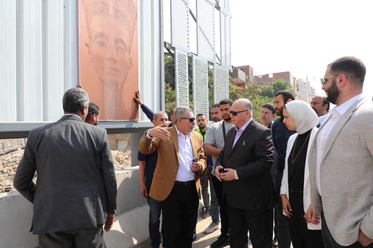 واستعرض محافظ القاهرة خلال الجولة نماذج من اللوحات التى تمثل تاريخ مصر والتى سيتم نشرها على طول الطريق، مشددًا على سرعة الانتهاء من إزالة أى مخلفات هدم متواجدة ورفع كفاءة الممرات أسفل الطريق.