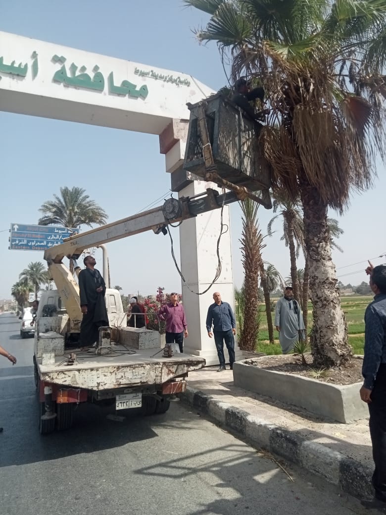 حملة لنظافة وصيانة كشافات الإنارة بمدخل أسيوط الجنوبي
