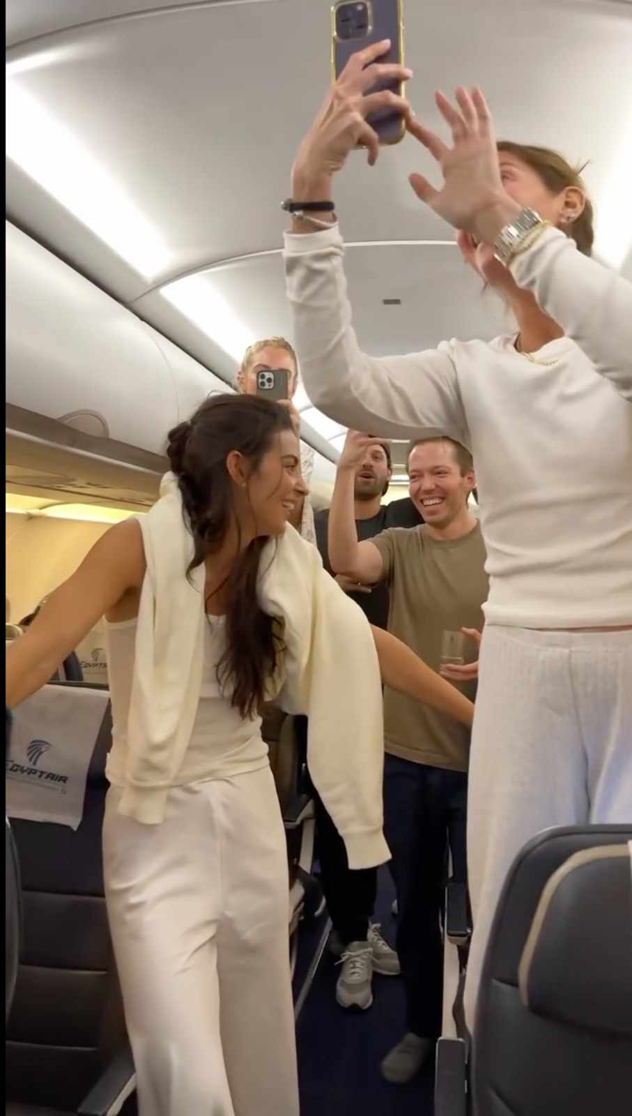 وقد لاقت مشاهد العروسين داخل الطائرة والتي تعد أول مراسم حفل الزفاف استحسان كبير من رواد التواصل الاجتماعي، حيث التقطت للعروس في الفيديو لحظة ظهورها الأول على متن الطائرة مرتدية الفستان الأبيض، وسط حماس الحضور من المدعوين الموجودين على متن الطائرة وعددهم نحو 80 راكباً، ليبدأ بعدها دخول العروس إلى ممر الطائرة واستعراض صديقاتها لملابسهن من الفساتين المخصصة لحفل الزفاف.