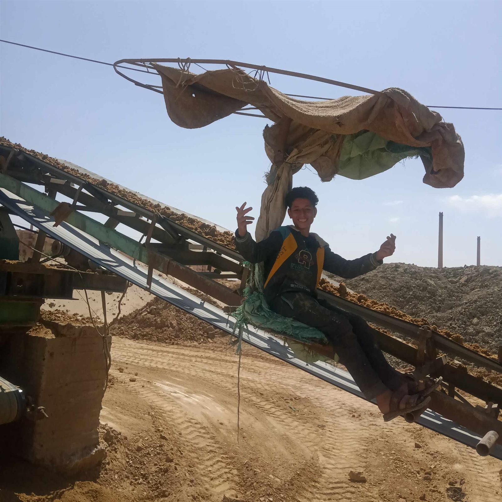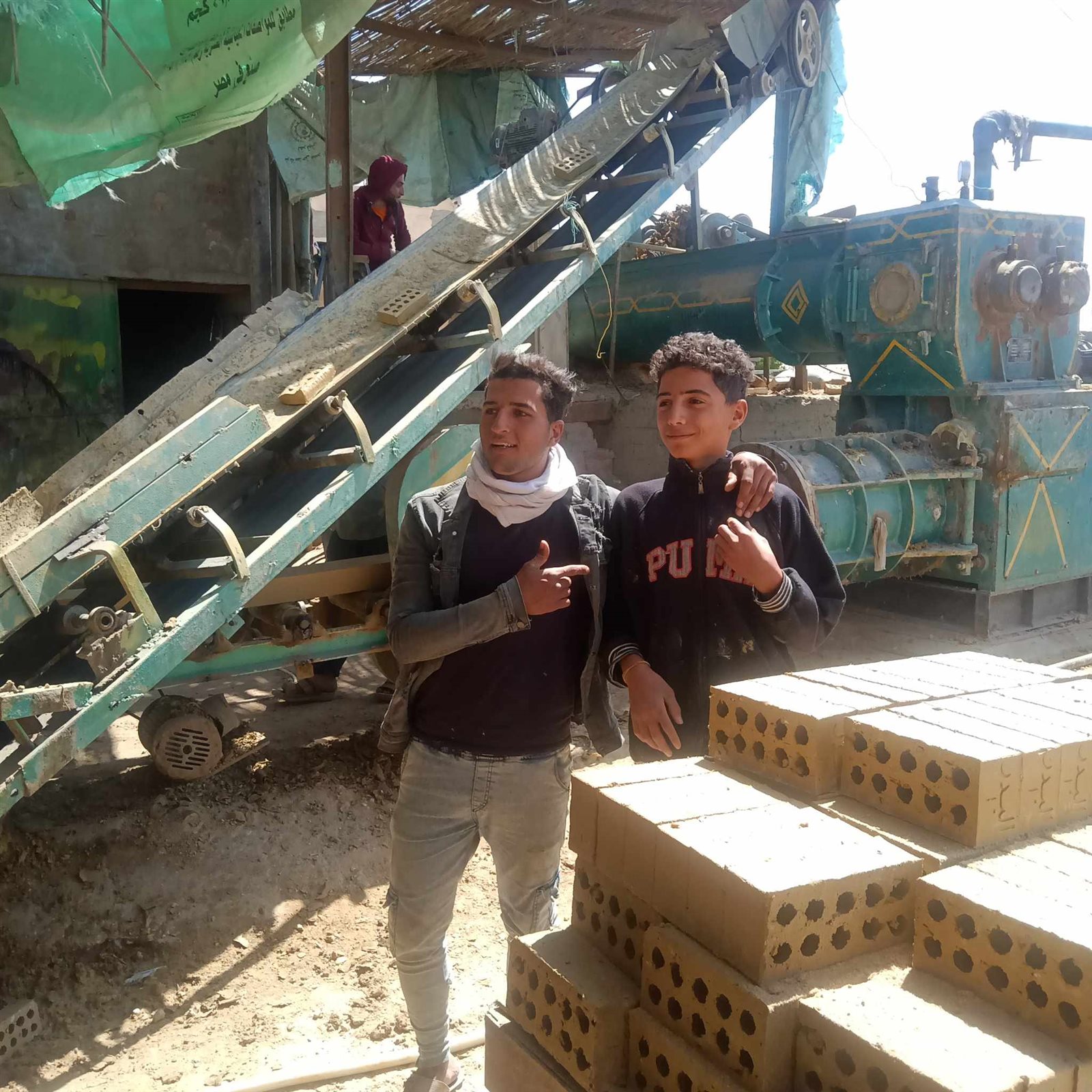 يجلس طفل على السير الذى يحمل التراب لتحويله إلى طوب، يفصل عنه ما يسمى بـ»الكاشيرة»، وهى عبارة عن قطعة طوب كبيرة تعرقل الحركة، ومنها إلى الخلاطة التى تهرس التراب وتجعله عجينة، ومنها إلى ماكينة تقطيع الطوب وصبه فى قوالب، ليخرج فى شكله الأول أخضر، ويتم رصه تحت الشمس حتى يجف ثم يُصهر فى الفرن على مرحلتين.
