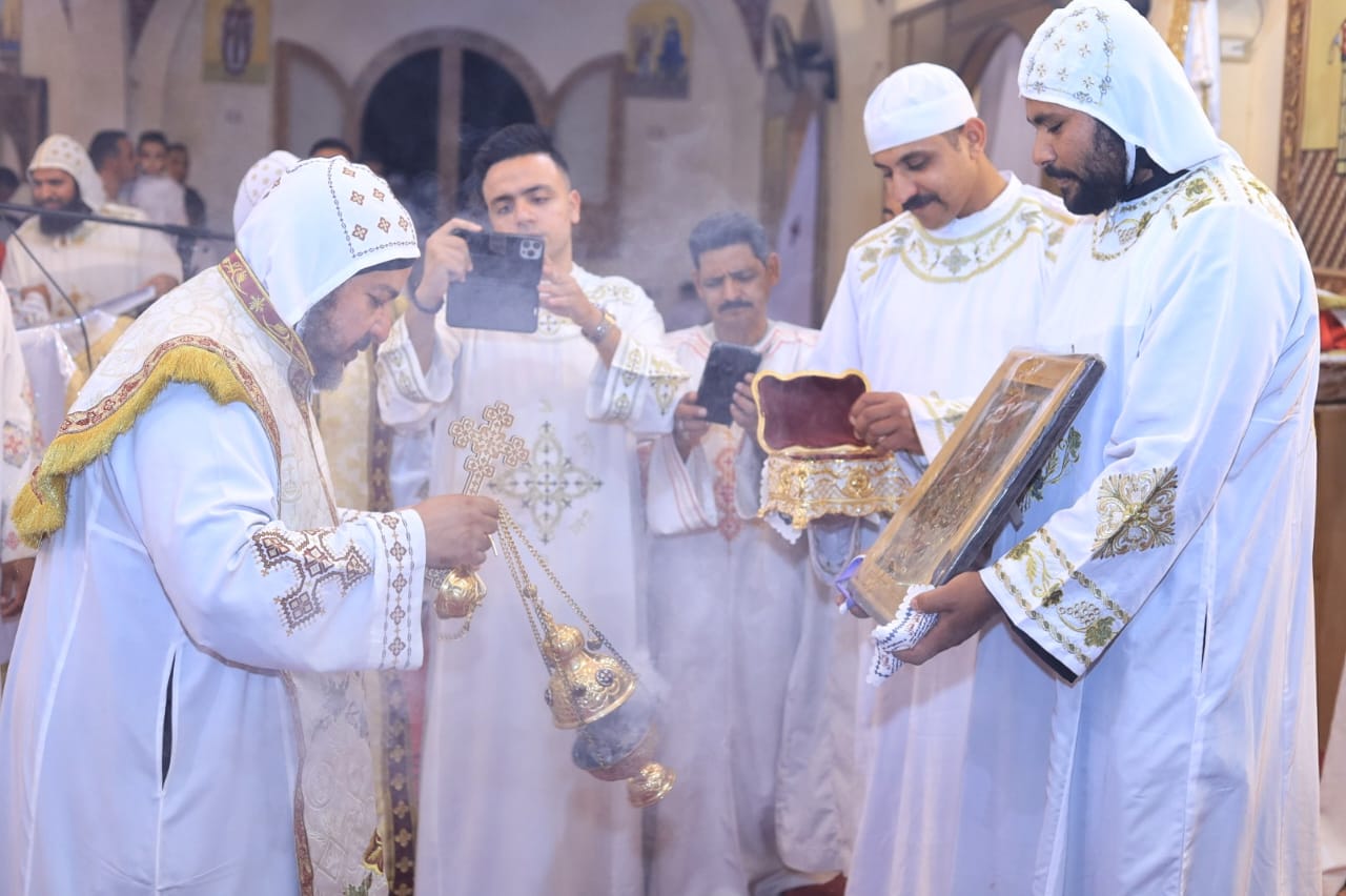 بالشموع وأيقونة المسيح.. الأقباط يحتفلون بعيد القيامة بدير الأنبا متاؤس في الأقصر