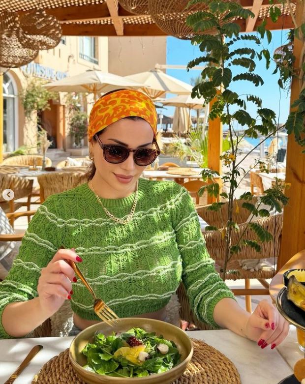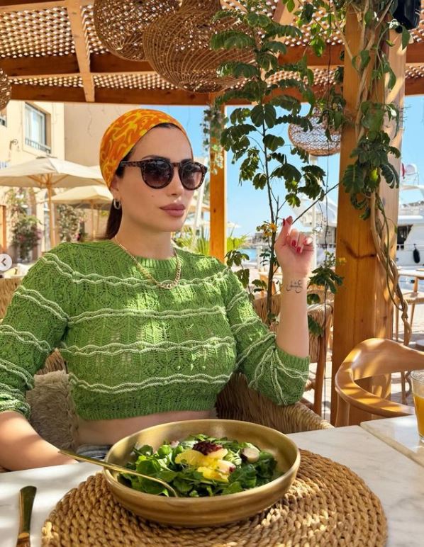 وبدت نسرين طافش بإطلالة صيفية لافته، مستوحاه من زهور الربيع، حيث ارتدت توب قصير صمم من خيوط الصوف باللون الأخضر ونسقت عليه بنطال جينز ينتمي لقصة الهاي ويست.
