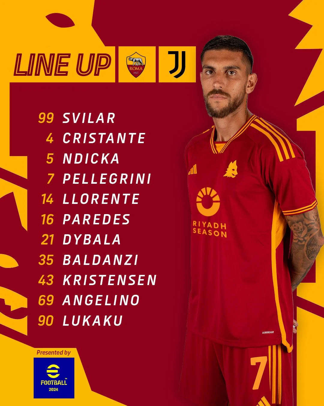 سفيلار، كريستنسن، لورينتي، نديكا، أنخلينو، كريستانتي، باريديس، بيليجريني، ديبالا، بالدانزي، لوكاكو.