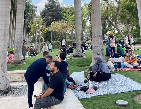 كما يعد الخروج إلى المتنزهات والحدائق من أهم العادات لدى الكثير من الأسر بل من مظاهر الاحتفال لذلك يلجأون الى المتنزهات والحدائق للاستمتاع بأجواء الربيع في ذلك اليوم.