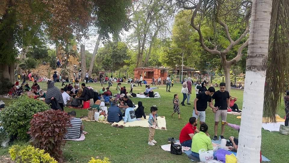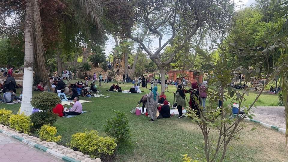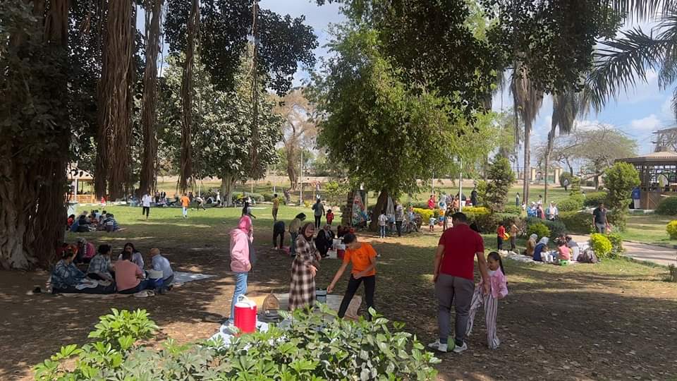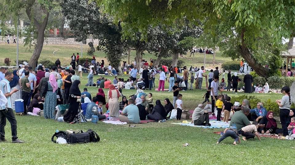 استمرار توافد المواطنين علي حدائق القناطر الخيرية، والتي فتحت أبوابها من الثامنة صباحا لاستقبال زوارها للاحتفال بعيد شم النسيم بين الأشجار وعلى شاطئ نهر النيل.