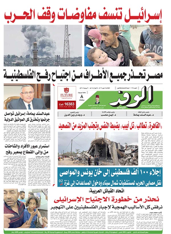 تنشر جريدة الوفد في عددها الصادر، غدًا الثلاثاء، الكثير من الموضوعات والتقارير الإخبارية المهمة، أبرزها: “إسرائيل تنسف مفاوضات وقف الحرب”.