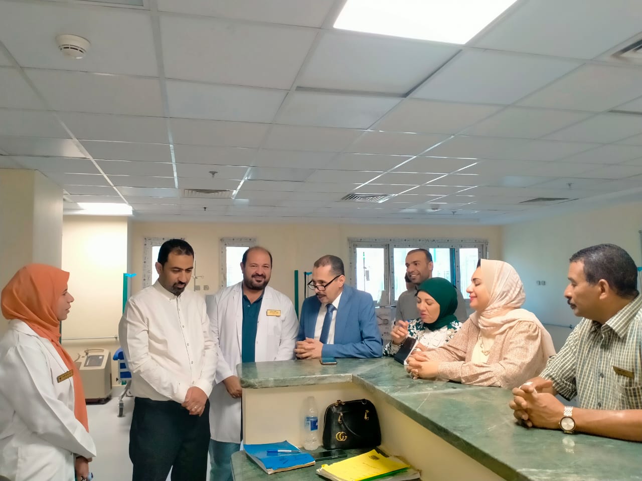 وأشاد وكيل وزارة الصحة، بتواجد وانضباط الأطقم الطبية وكذلك إقبال المواطنين لتلقي الخدمة بالمستشفي، وتفقد وحدة الغسيل الكلوي بالمستشفي.