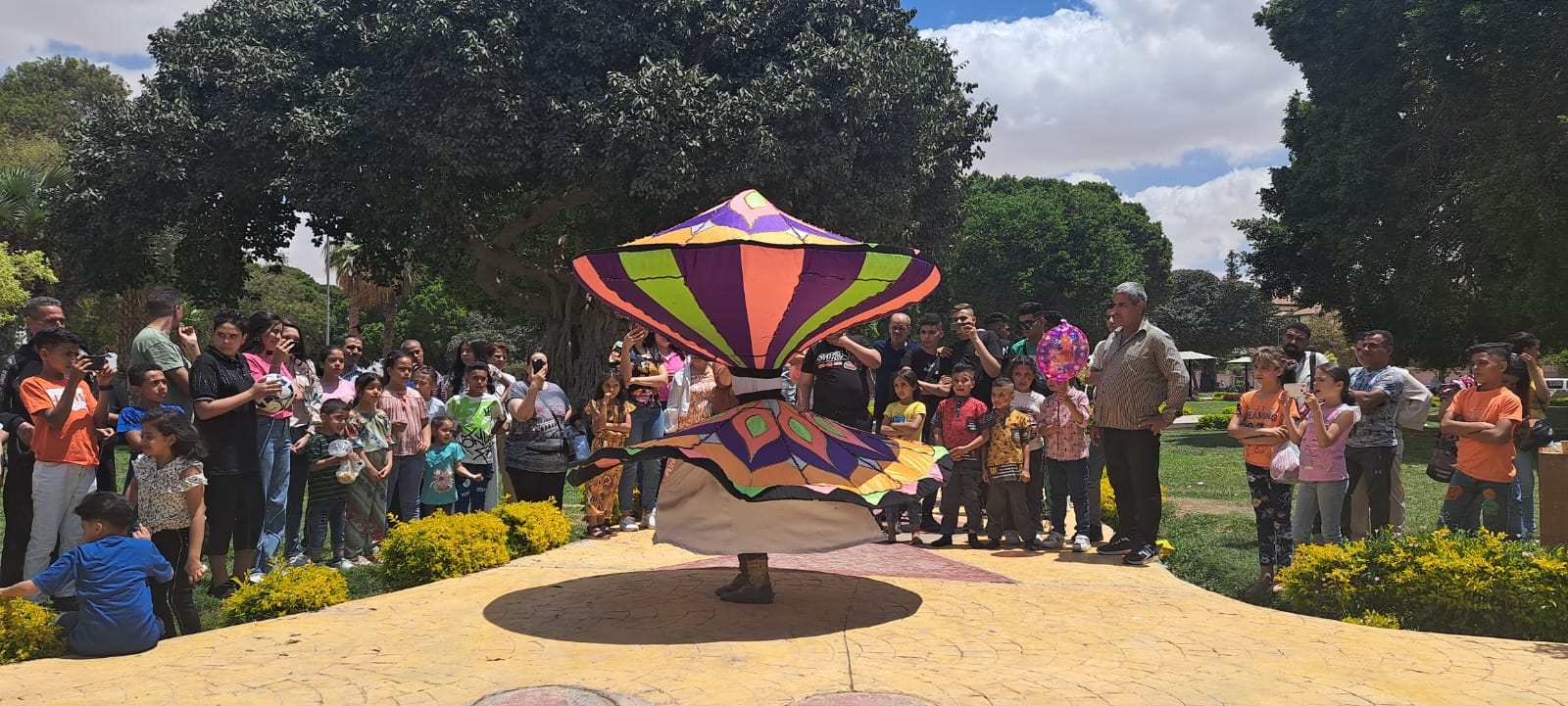 كما قدمت فرقة التنورة التراثية عرضا فنيا بقيادة الفنان إبراهيم غريب، أعقبه فقرة رسم على الوجه وسط تفاعل كبير من الأطفال.