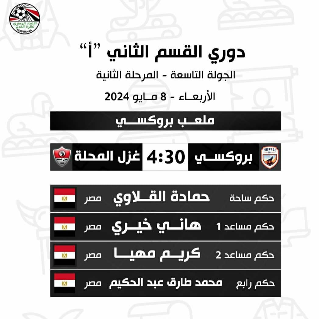 حكام مباراة بروكسي مع غزل المحلة