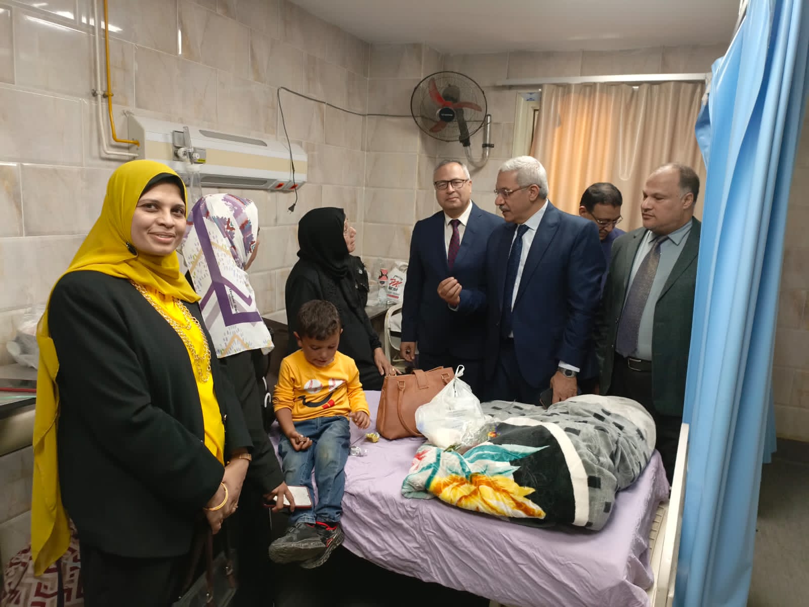 قام الدكتور محمود صديق، نائب رئيس جامعة الأزهر، والدكتور حسين أبو الغيط، عميد كلية الطب، والدكتور عبده الشافعي، مدير عام مستشفى سيد جلال الجامعي، والدكتورة هبة سعودي الاستاذ بكلية العلوم بنات ومنسق الأنشطة الطلابية، بجولة تفقدية للاطمئنان على الحالات المصابة من قطاع غزة والتي تتلقى العلاج الشامل بمستشفيات جامعة الأزهر بالقاهرة ودمياط وأسيوط في مختلف الأقسام بالمستشفيات الجامعية، وتم توزيع الورود والشيكولاته على الحالات المصابة؛ لإدخال السعادة عليهم.