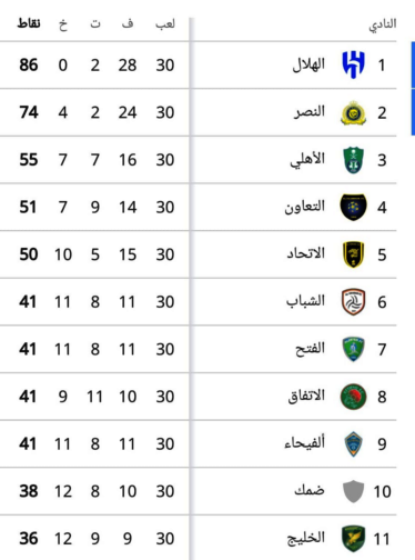 ترتيب الدوري السعودي قبل الجولة 31