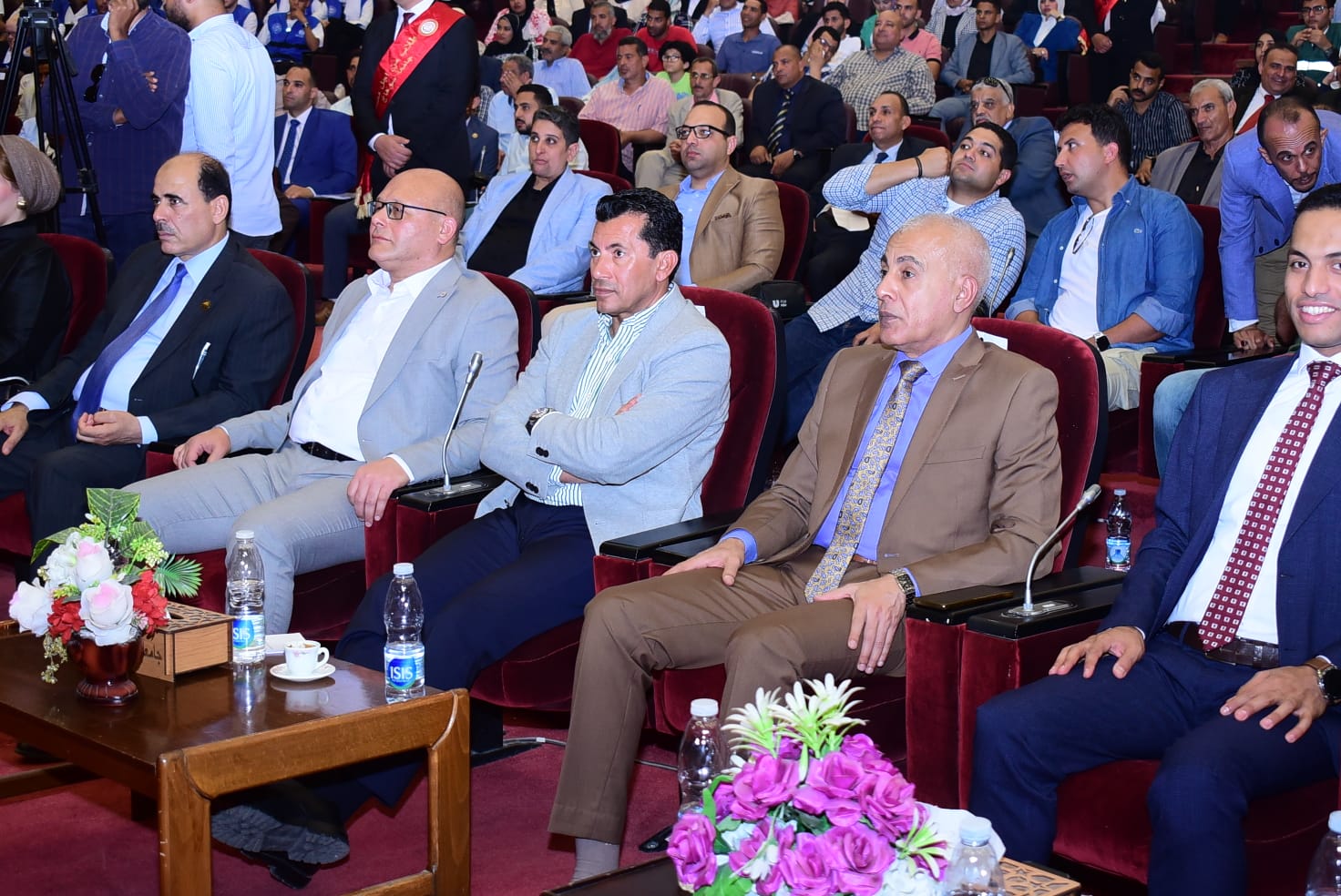وفى بداية كلمته، أعرب الدكتور أشرف صبحي، عن سعادته بالتواجد للمرة الأولى داخل هذا الصرح الجامعي العريق، مشيداً بحجم الإنجازات التى شهدها بالمشروعات الإنشائية بالمقر الجديد للجامعة، وبالمستوى المتميز للنشاط الطلابي الذى يظهر واضحاََ خلال مشاركة منتخبات الجامعة فى اللقاءات القمية والمحافل المحلية، وحصدها مراكز متقدمة فى مختلف الأنشطة الطلابية التى تنفذها الوزارة بالتعاون مع وزارة التعليم العالي، بهدف دعم مهارات الطلاب وتعزيز مشاركتهم المجتمعية، واكتشاف الموهوبين والمبدعين فى المجالات الرياضية والفنية والأدبية، موجهاً الشكر والتقدير لجميع منسوبي الجامعة على حسن الضيافة والاستقبال، واعداََ باستمرار تقديم كافة أوجه الدعم لمواصلة التميز والإبداع بمختلف الأنشطة الطلابية.