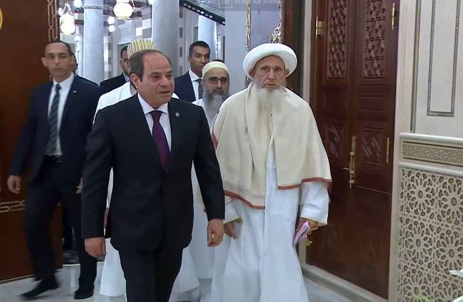 وكان الرئيس السيسي وصل، قبل قليل، إلى مسجد السيدة زينب، وكان في استقباله مفضل سيف الدين، سلطان طائفة البهرة بالهند، وعدد من القيادات الدينية والسياسية والتنفيذية.