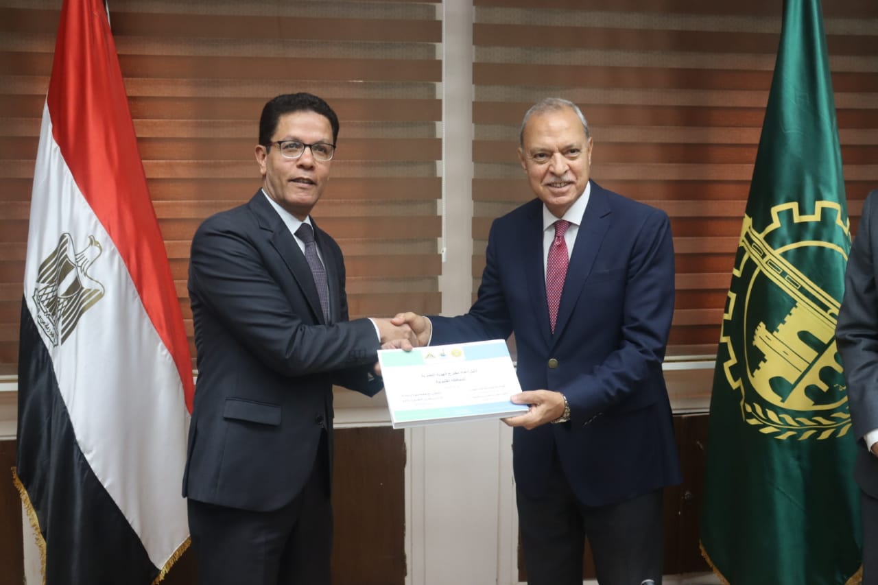 محافظ القليوبية ورئيس جامعة بنها يشهدان تسلم دليل تنفيذ الهوية البصرية