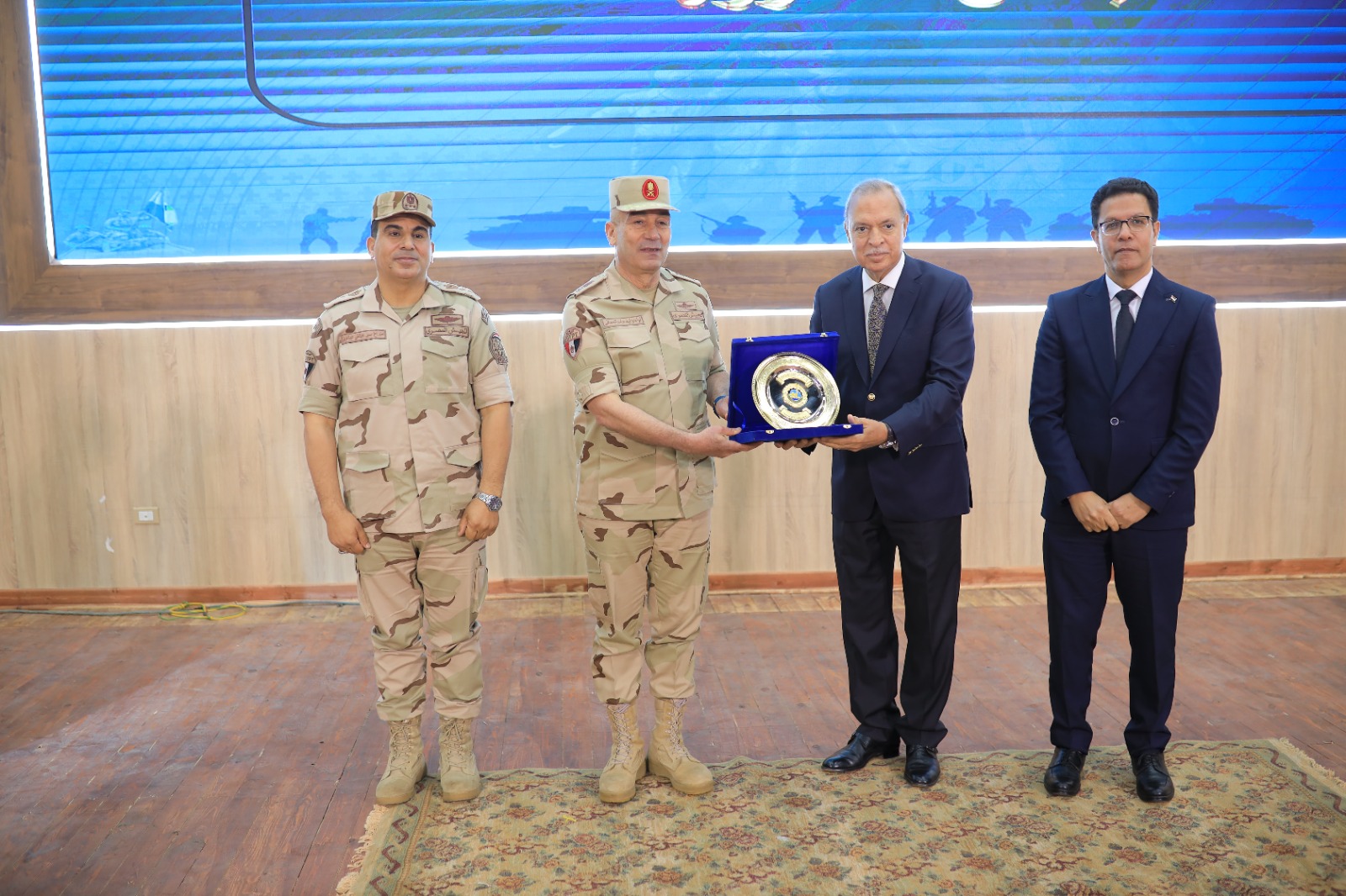 وأشاد اللــــواء وليد الحماقي - قائد قوات الدفاع الشعبي والعسكري بالجهد المبذولة من قبل جامعة بنها لتنفيذ الإستراتيجية التي تنتهجها القيادة السياسية ،لتنمية روح الولاء والانتماء والمواطنة لدى أطياف المجتمع المصري وخاصة الشباب باعتبارهم هم بشائرالمستقبل، معرباً عن سعادته بالتواجد بين جدران هذا الصرح العلمي الكبير بيت العلم والمعرفة، و فخره واعتزازه بطلاب جامعة بنها ،ومشاركتهم الحلم نحو بناء الجمهورية الجديدة .