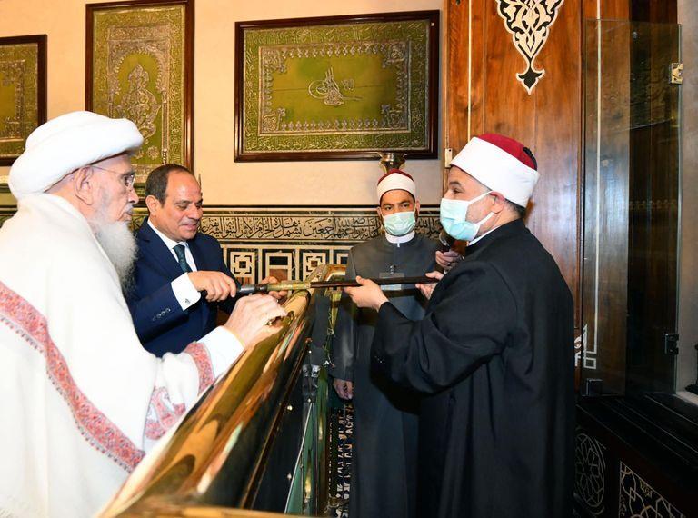 افتتح الرئيس السيسى يرافقه السلطان مفضل سيف الدين سلطان طائفة البهرة أعمال التطوير والترميم لمسجد السيدة نفيسة رضي الله عنها يوم 8 أغسطس 2023