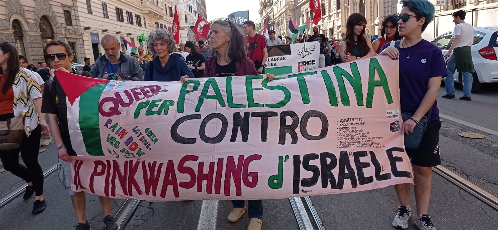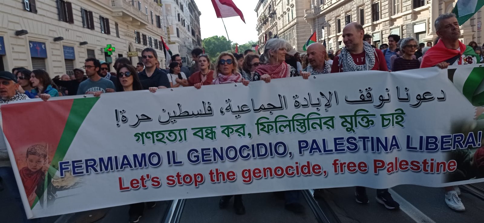 وكان المشهد الأكثر جذبا للأنظار هو النسبة الكبيرة للشباب الإيطالي وأبناء الجالية العربية في روما والذين تصدروا مشهد المظاهرة وهو الأمر الذي يعكس مدي وعي هؤلاء الشباب بالحق الفلسطيني ووعيهم للزيف الذي تمارسه الحكومة الإيطالية ووسائل الإعلام الإيطالية علي الشعب الإيطالي .