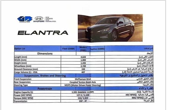 وحصلت بوابة الوفد الإلكترونية من أحد الموزعين المعتمدين على المواصفات المتوقعة للسيارة هيونداي النترا AD المجمعة محلياً.
