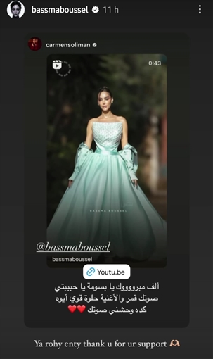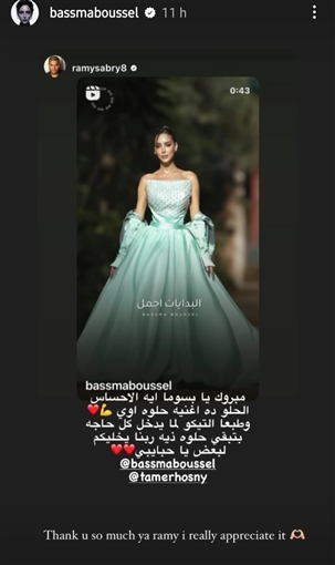 ومن جانبه حرص تامر حسني على توجيه رسالة لبسمة بوسيل ليهنئها على أغنيتها الجديدة وقال لها: "الدنيا كلها متغلاش عليكي يا بسوم ألف مليون مبروك وغنيتيها غُنا عظيم بجد أيوة أنا المدرب والمنتج، بس احساسك هو الموضوع كله".