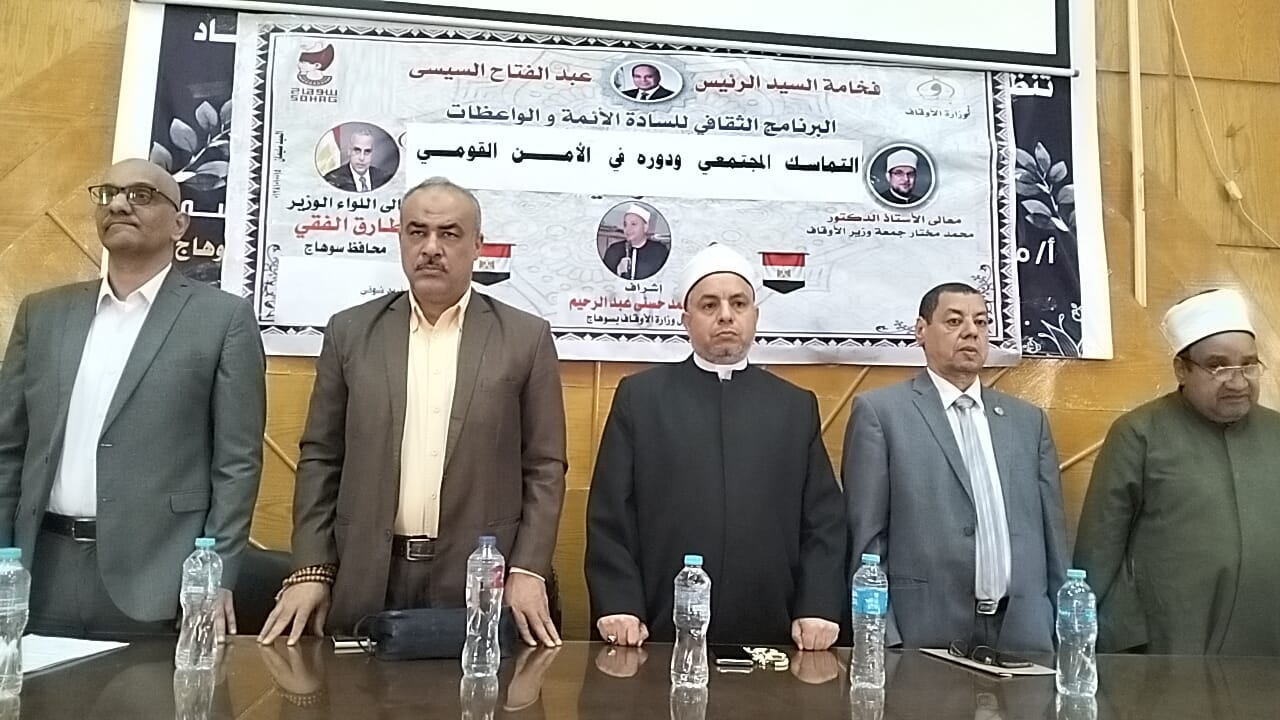 نظمت مديرية الأوقاف بمحافظة سوهاج بالإشتراك مع مديرية الشباب والرياضة برنامج البناء الثقافي للأئمة والواعظات اليوم الإثنين الموافق 13 من شهر مايو الجاري بمقر مديرية الشباب والرياضة تحت عنوان "التماسك المجتمعي ودوره في الأمن القومي" لعدد 250 إماما وواعظة .